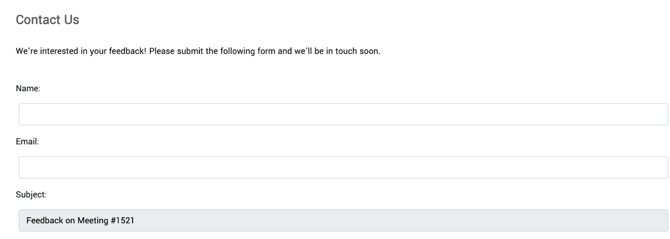 Tip: If your feedback relates to a specific meeting, please include as many details as possible — such as the meeting link, meeting number, date and time, or the facilitator’s name — so we can locate it quickly.